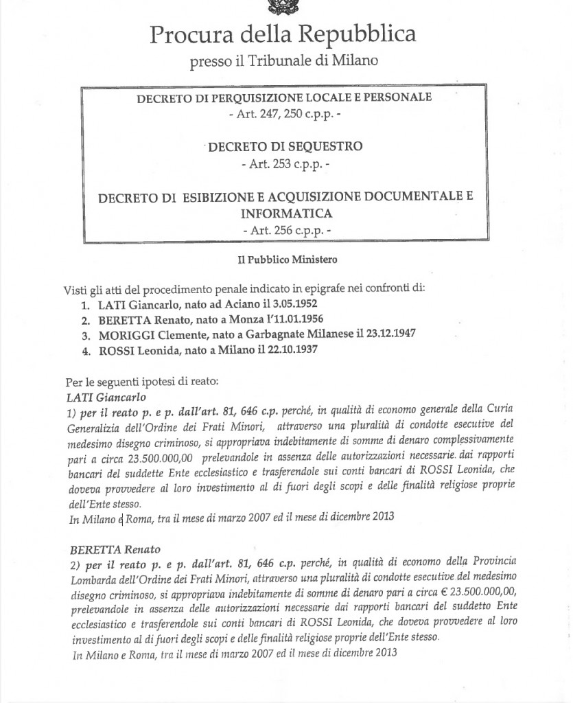 Secondo la Procura di Milano, a partire dal 2005, dalle casse del San Raffaele, fondato da don Luigi Verze’, sarebbero stati distratti circa 47 milioni, cinque dei quali arrivati direttamente a  Daccò, accusato, oltre che di concorso in bancarotta, anche di associazione per  delinquere finalizzata alla distrazione di fondi, all’appropriazione indebita e alla frode fiscale. Col rito  ordinario erano stati  assolti Giovanni Luca Zammarchi, Fernando Lora e Carlo Freschi in relazione a presunte sovrafatturazioni a un paio di  società.