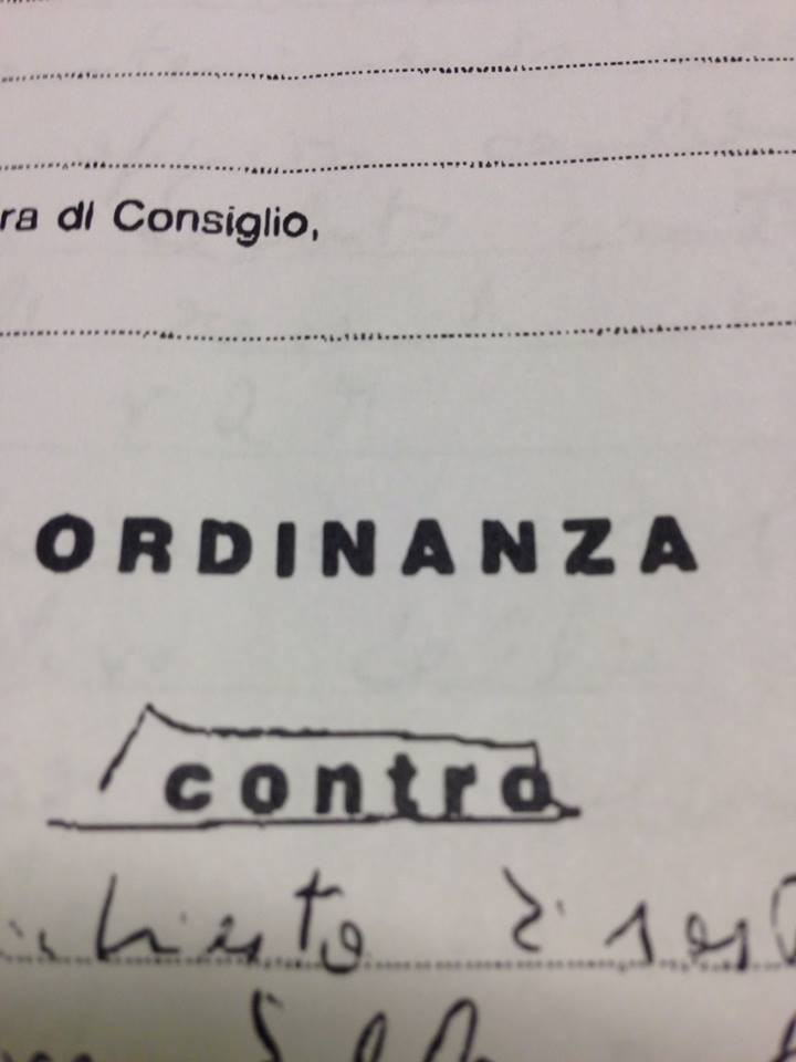 Un ‘leggero’ pregiudizio contro la difesa? Così parrebbe, però concediamo al magistrato di avere dimostrato un verecondo riguardo verso il legale cerchiando la parola “contro” a penna: come a dire, mi è scappato il pre – stampato, ma poi stai tranquillo che ci ho anche pensato su. (m.d’a.)