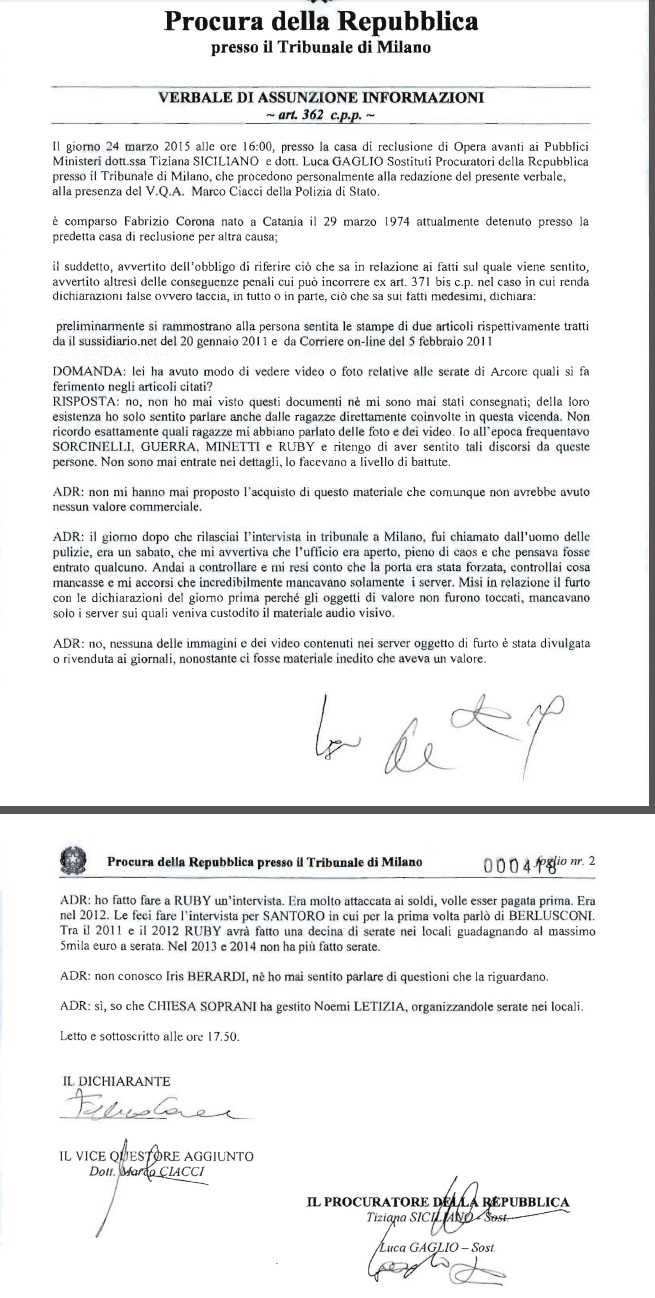 “E’ del tutto evidente che rapporti di tal genere con un personaggio come Berlusconi Silvio costituiscono un movente più che consistente, quasi scontato, per dichiarare il falso su circostanze, quali quelle relative ai rapporti sessuali dallo stesso consumati, con giovanissime donne, perciò stesso retribuite, in occasione dei ricevimenti nella villa di Arcore che, oltre a poter avere rilevanza sul piano delle responsabilità penali, avrebbero comunque arrecato, quanto meno, imbarazzo ad uno degli uomini più potenti d’Italia”.